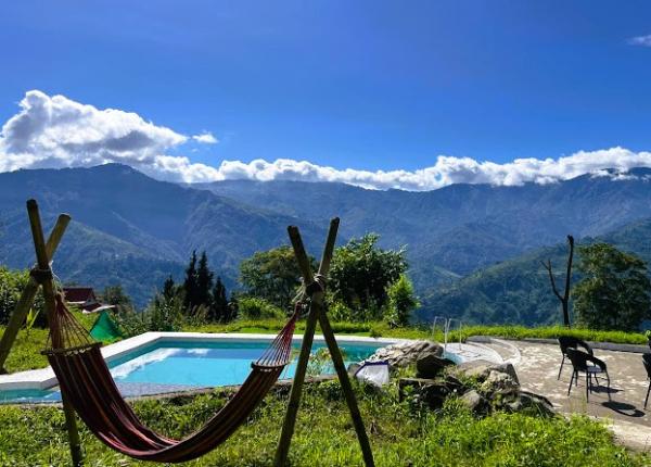 সীমানা ঘেরা পুরো রিসর্ট এলাকাটাই পাহাড়ের গায়ে খাঁজ কেটে ধাপে ধাপে নেমে গেছে নিচে। সবশেষে খাদের কাছে গায়ে গায়ে লাগানো দু’টি স্যুইমিং পুল। একটি ছোটদের জন্য আর একটি বড়দের।
