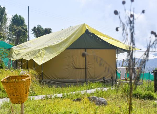 পৌঁছলাম ‘ধরতি দ্য গ্ল্যাম্পিং হেভেন’ রিসর্টে। পৌঁছে দেখলাম বিরাট গেট। ঢুকেই মনটা হালকা হয়ে গেল এমন, যেন সমস্ত ভার থেকে মুক্ত হয়ে হাওয়ায় ভেসে গেল। এগিয়ে এলেন মালিক ভদ্রমহিলা প্রেক্ষা শর্মা। হাসিমুখে সম্ভাষণ সেরে আমাদের তাঁবু দেখিয়ে দিলেন যার ভেতরে আমরা দু’দিন থাকব। বেশ লম্বা চওড়া ত্রিপল জাতীয় কাপড়ের টেন্ট। ভেতরে চারটে বিছানা। আমরা চারজন বলেই এই ব্যবস্থা। আমরা স্বামী-স্ত্রী আর আমাদের দুই ছেলে মেয়ে।